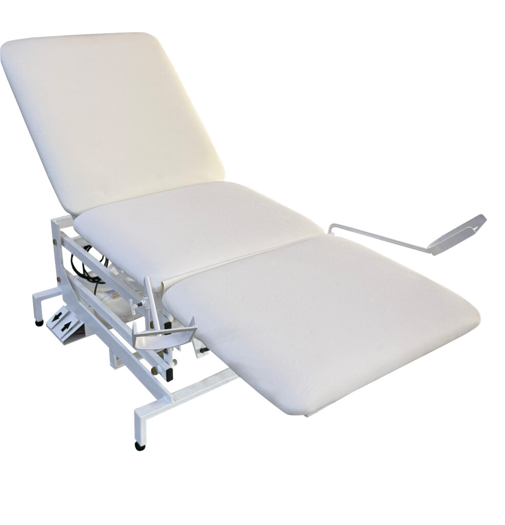 El modelo articulado permite al profesional utilizar la camilla tanto de forma convencional como sillón, pasando por diferentes posiciones predeterminadas tanto en piecera como en cabecera.